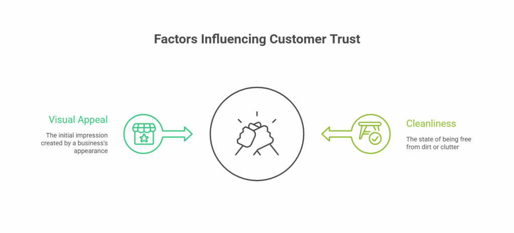 For instance, a spotless restaurant suggests high standards of hygiene, making customers more comfortable with dining in.